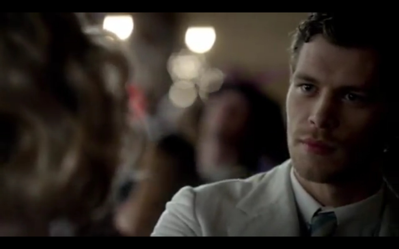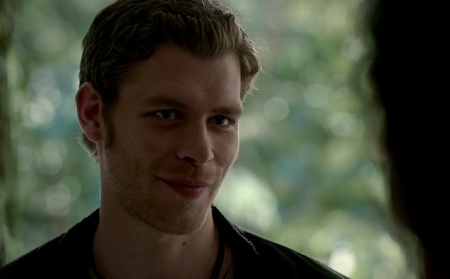 Klaus has a man pinned to wall in a chokehold. Klaus says that he should let the man live to tell others about this, but decides he is already on a roll. He breaks the man's neck and flings the dead man to the floor. He smiles at his handiwork but then is pinned to wall himself by Caroline Forbes. She asks why doesn't he pick on someone his own size. Klaus smiles and says "Hello, love."