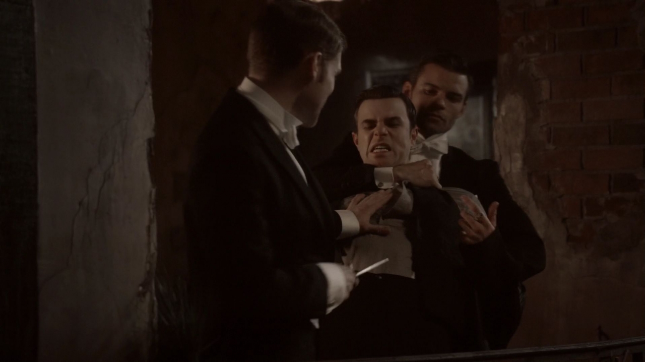 [14]Klaus and Elijah searching for their younger brother In 1702, Kol's violence in Spain drew too much attention and brought Mikael, straight to the family, burning the country in his wake. While the flames drew closer and Mikael beheaded Klaus' horse, Theo. Elijah and Klaus searched for Kol while Rebekah brought the daggered Finn on-board a ship to flee from Europe. They found him in a tavern where he drank and feasted on humans carelessly. Despite their warnings of Mikael's coming, he refused to flee. When Klaus and Elijah insisted, Kol attempted to resist them but was subdued by Elijah as Klaus pulled out one of the white oak ash daggers and successfully neutralized Kol.